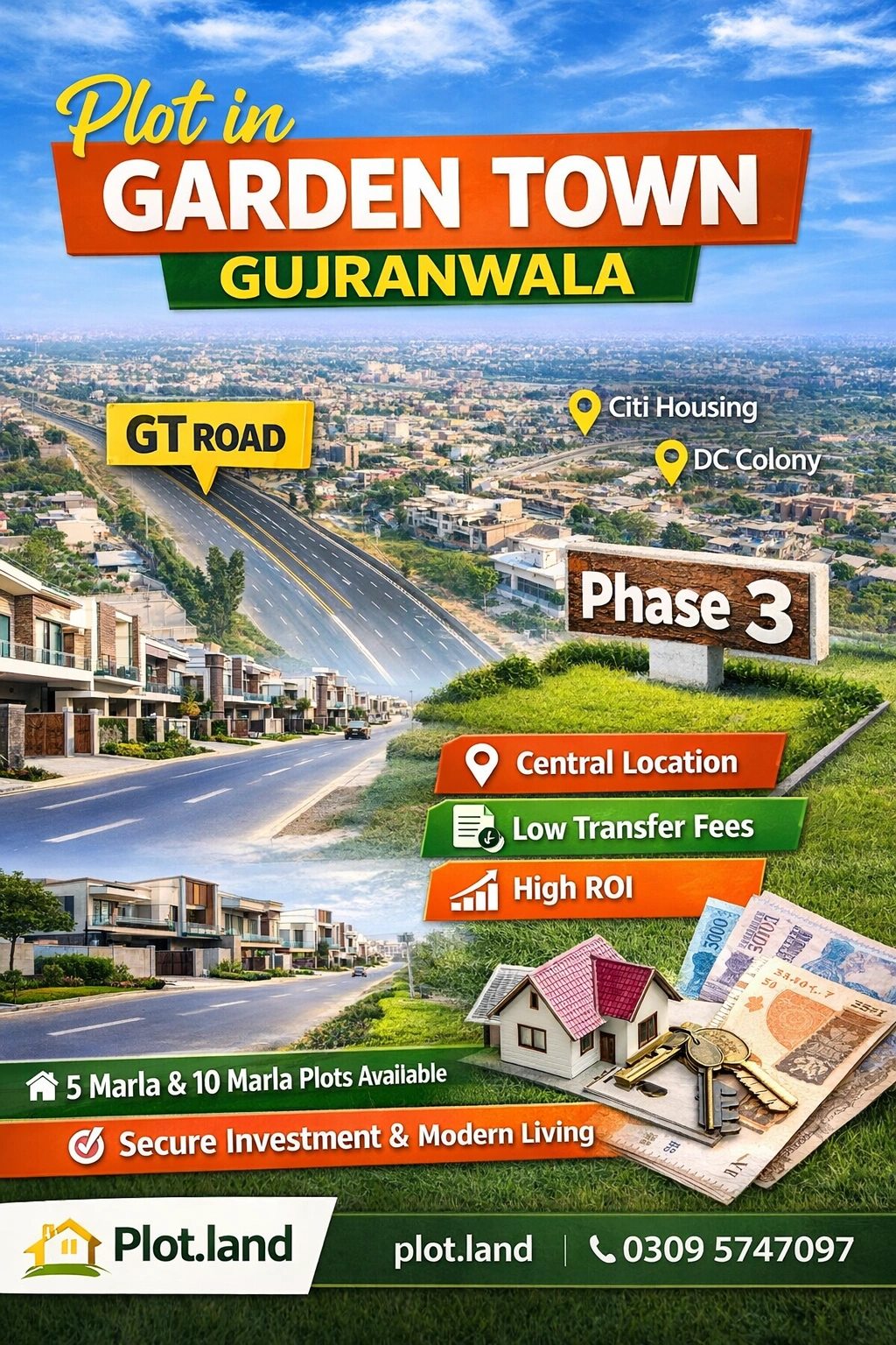 Looking to buy a plot in Garden Town Gujranwala? Discover why Phase 3 is one of the best investment opportunities in the city with its central location, low transfer fees, and high resale value. A complete guide for smart buyers and investors.