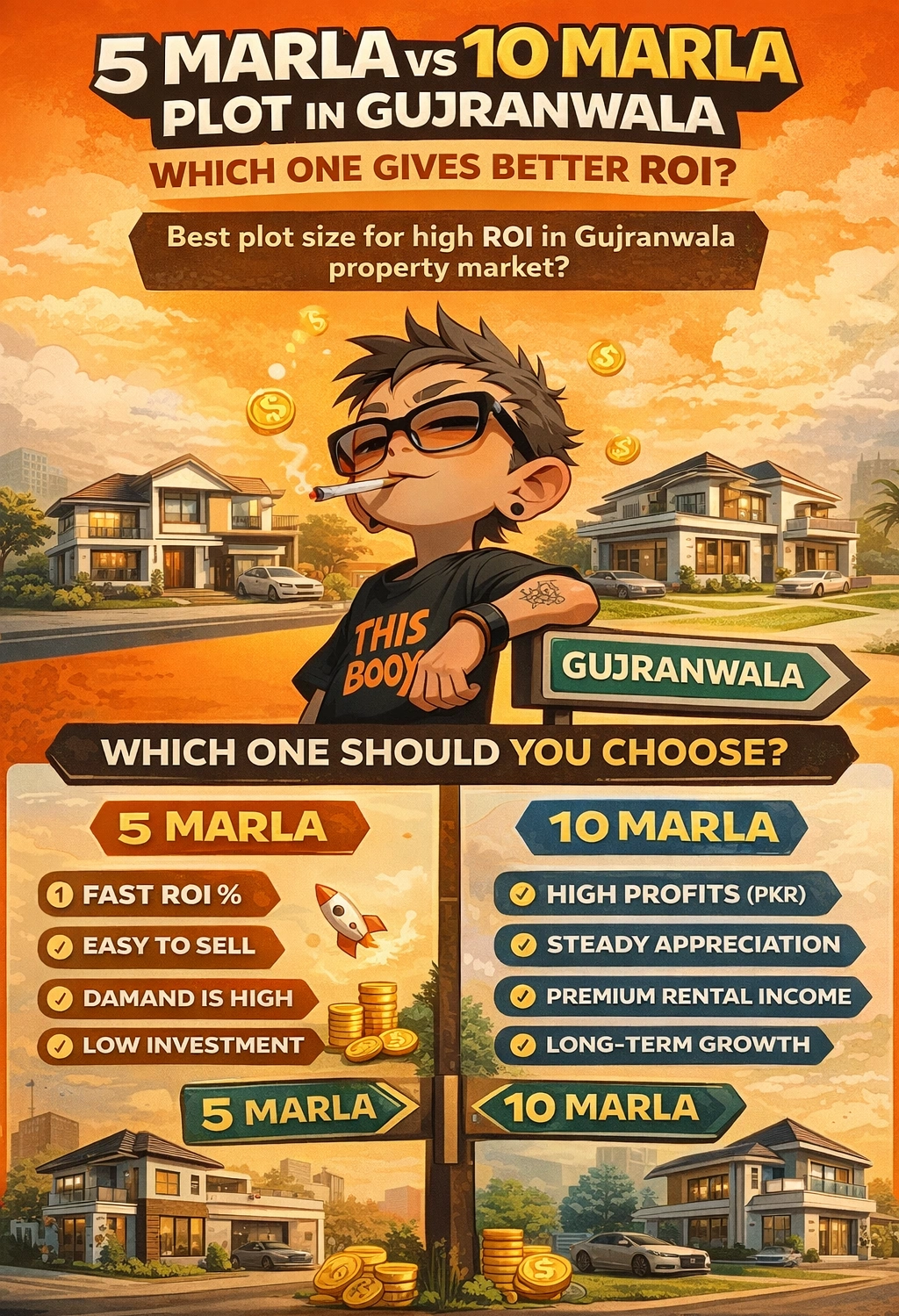 Confused between investing in a 5 Marla or 10 Marla plot in Gujranwala? Discover which option offers better ROI, faster resale, and long-term profit. This expert guide breaks down investment potential, rental income, and market trends to help you make the smartest property decision.